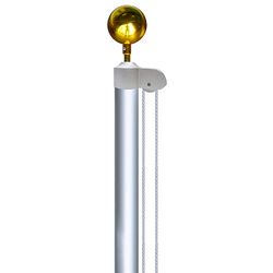 Proudly showcase your outdoor flags with the quality, construction and durability of this 20' white aluminum sectional flagpole. It's constructed out of 16 gauge aluminum, has a 2" diameter measurement, a satin anodized finish, 6 die cast aluminum cleats, a durable halyard rope, 3/8" nylon snap hooks, a 2" cast aluminum truck with a nylon pulley and a PVC ground sleeve. It's topped with a 3" gold anodized aluminum ball.